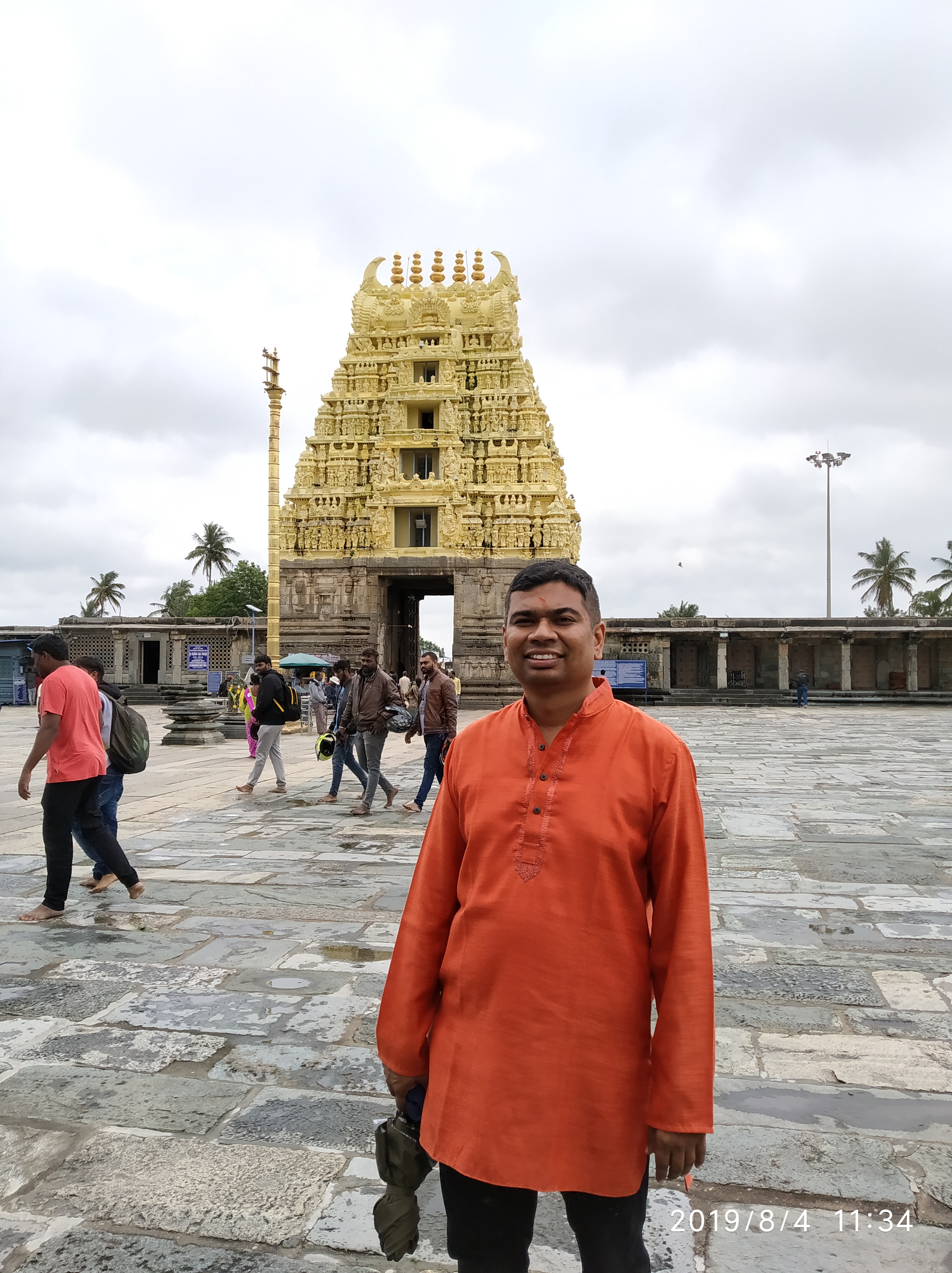 On 3-Aug-2019, we set out at 8:00 AM to Sharavanbelogola in a hired Tata Indica. The roads in this part of Karnataka are pretty good and we made swift progress till KR Pete where stopped for a quick snacks. Even small towns in Karnataka have a hygienic vegetarian restaurant , which is quite commendable.