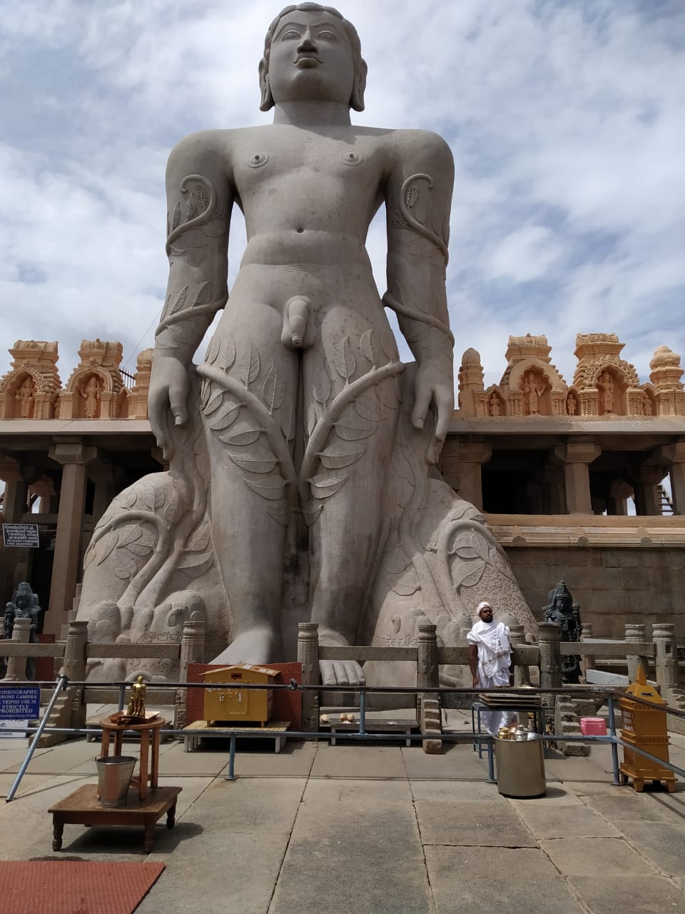 The Darshan of the 58 feet statue of Bahubali, made from single block of granite , was awe inspiring. Built in 981 A.D, it is one of the largest free-standing statues in the world. The proportions of the statue are perfect in every way, and what mesmerized me the most was its face . It reflects the calmness ,serenity and the Kaivalya (Supreme Knowledge) attained by Bahubali. The statue also has linguistic significance with carved inscriptions in Kannada and Tamil, as well as the oldest evidence of written Marathi.