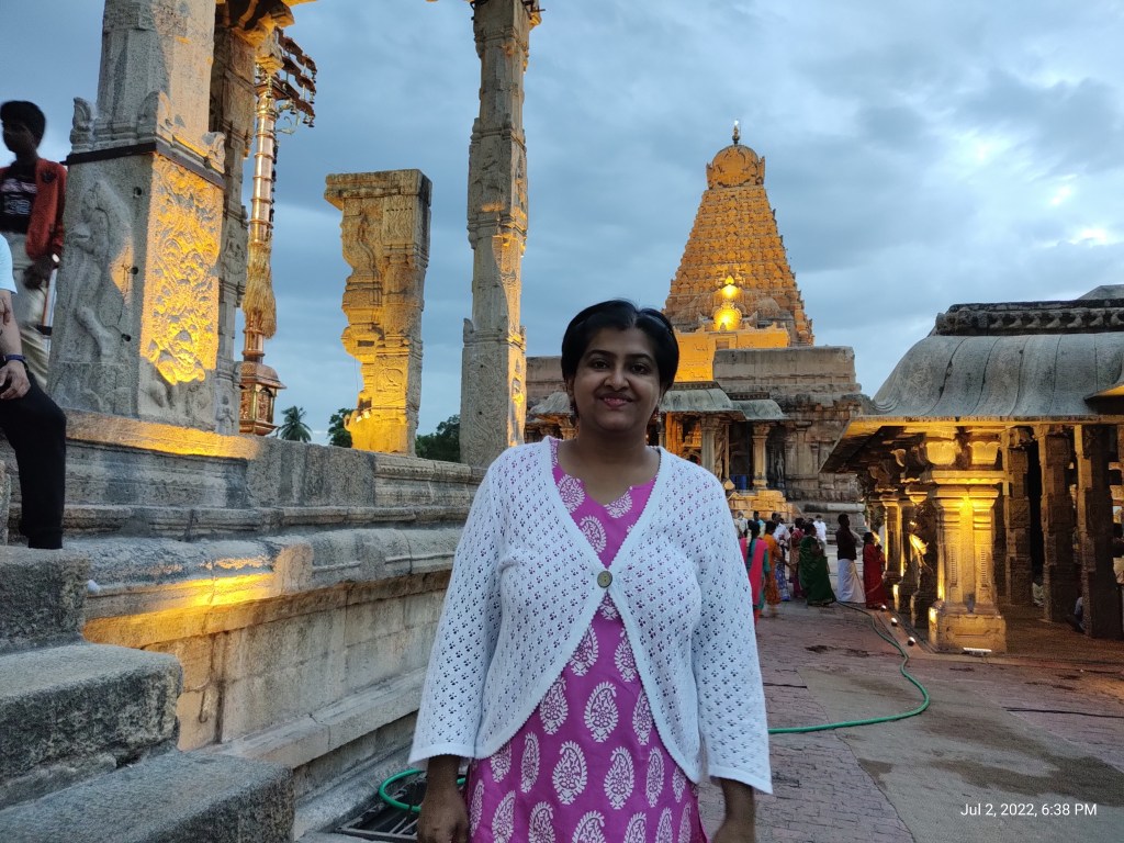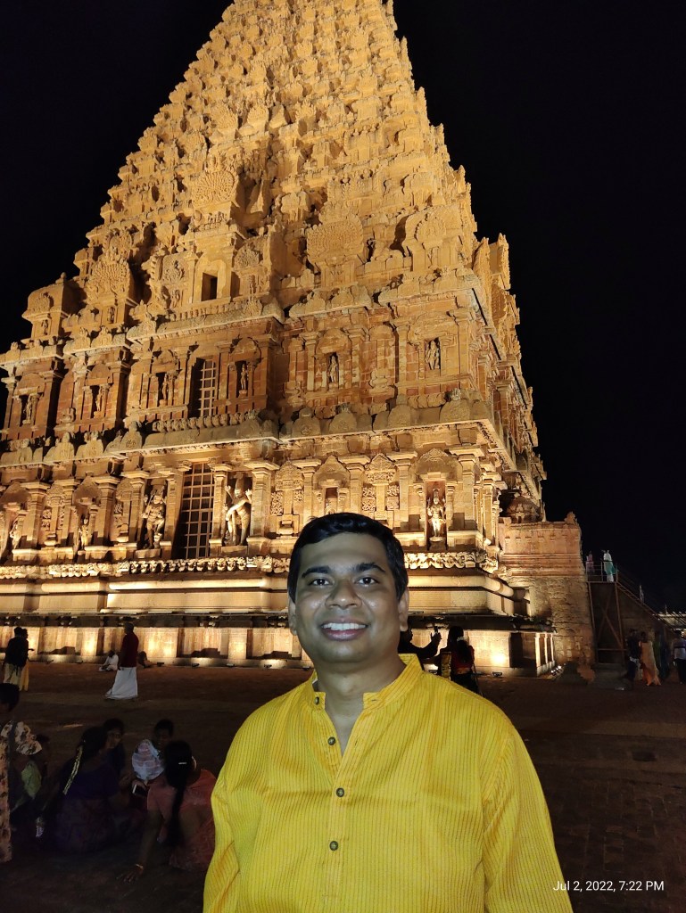 Later in the day we visited Brihadeshwara temple – built in the 11th century by the Chola king Raja Raja Chola I and dedicated to Lord Shiva. The temple complex was brightly lit with classical musical program performance. Devotees and tourists thronged the temple giving it a festive atmosphere