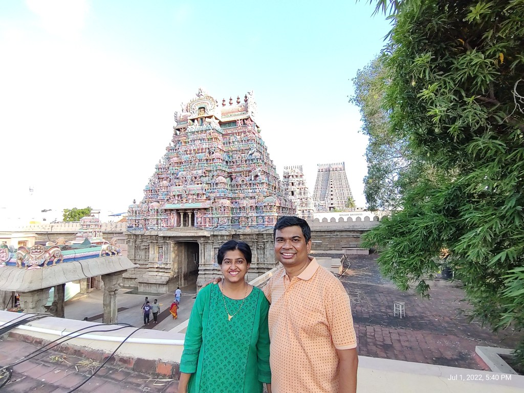 The darshan of both Meenakshi Devi and Lord Shiva took around 30 minutes and was memorable. Post the darshan, we admired the huge idols in the temple complex. The ones I found fascinating were those of Lord Ganesha, Nataraja and Bhadhara Kali. Each of these idols is more than eight feet in height and has exquisite expressions. There are shrines dedicated to Mahalakshmi, Saraswati, Dakashinamurthy and other deities in which regular worship is performed.